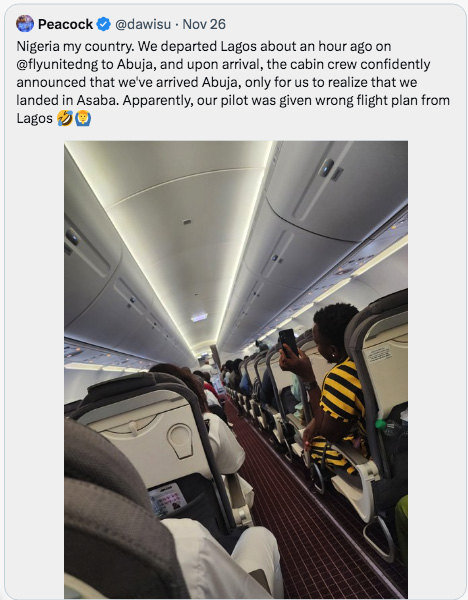 Son récit est corroboré par celui d’un passager qui a déclaré sur X qu’« à l’arrivée, le personnel de cabine a annoncé avec confiance que nous étions arrivés à Abuja » alors qu’à leur grande surprise, il réalisait « que nous avions atterri à Asaba », ajoutant qu’« apparemment, notre pilote a reçu [le ] mauvais plan de vol depuis Lagos ».
