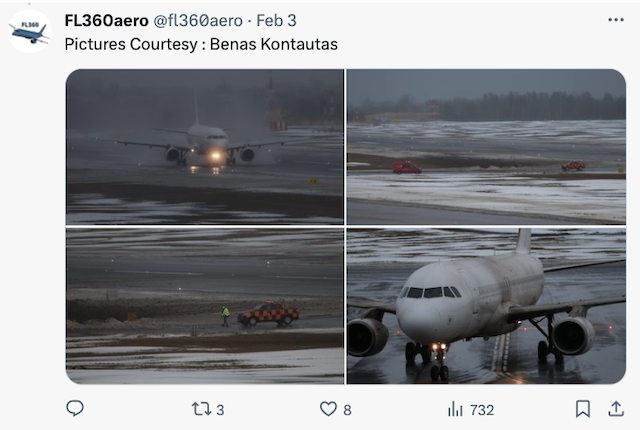 Le 3 février, le vol Avion Express X98242 parti de Milan Bergame pour Vilnius était opéré avec un Airbus A320 de 12 ans immatriculé LY-NVL. Après avoir atterri sur la piste 19, par ailleurs cernée d’un manteau blanc, l’avion a glissé hors de la piste, s’est retrouvé sur un sol meuble sur sa droite, projetant une nuée trouble dans son dérapage. Il s’est finalement immobilisé. L’A320 a subi des dommages importants.