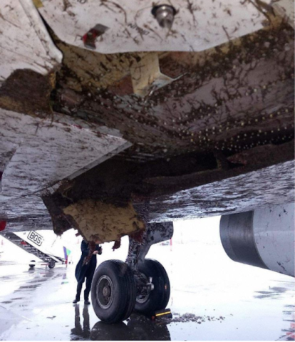A part une belle destruction de la carlingue, les pilotes ont été top, ils sont revenus sur la piste et sont sortis sans soucis par .. les taxiways. Certaines vidéos montrent l’avion, …. bien sale, .. mais autonome et se déplaçant seul sur le tarmac.