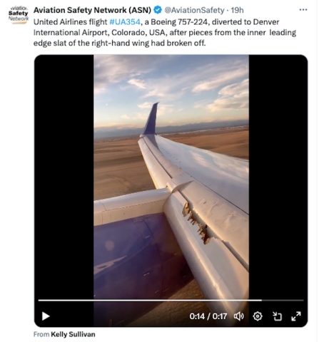 Le dernier incident concerne un Boeing 737-800 d’United Airlines dont a découvert à l’atterrissage qu’il lui manquait un panneau. Le PDG d’United Airlines affirme que cette série d’incidents récents, allant de la chute d’un panneau d’aluminium d’un avion à la perte d’une roue au décollage d’un autre avion, amèneront la compagnie aérienne à revoir sa formation en matière de sécurité pour ses employés. Le PDG Scott Kirby a précisé que la compagnie aérienne prévoyait déjà une journée supplémentaire de formation pour les pilotes à partir de mai et des changements dans le programme de formation des mécaniciens nouvellement embauchés.