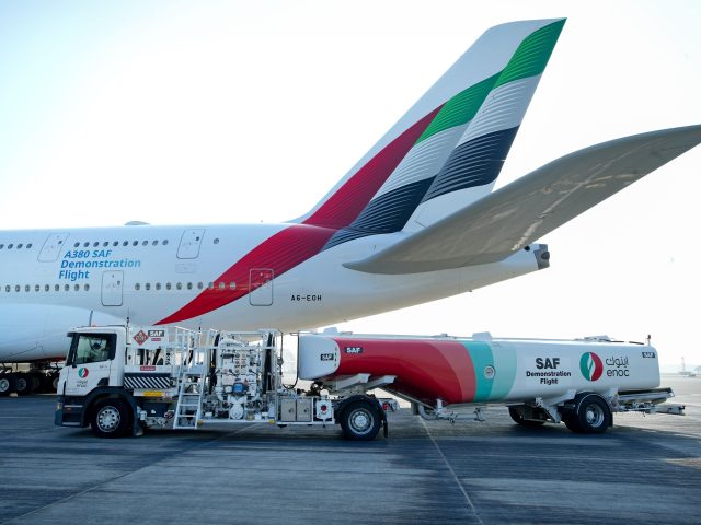 Le premier vol d’Emirates propulsé par du SAF mélangé à du carburéacteur a eu lieu en 2017 au départ de Chicago. La compagnie aérienne opère actuellement des vols au départ de Paris, Lyon et Oslo avec SAF. En octobre de l’année dernière, Emirates, avec le soutien de partenaires, a également intégré le SAF aux systèmes de ravitaillement de l’aéroport de Dubaï, attribuant le SAF à un certain nombre de vols, dont un vol vers Sydney.