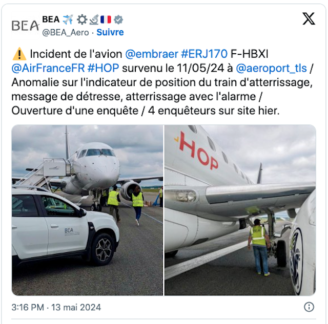 Le Bureau d’enquêtes et d’analyses (BEA) a ouvert une enquête suite au déclenchement d’une procédure d’urgence concernant un vol Embraer E170 de Hop ! (Air France).