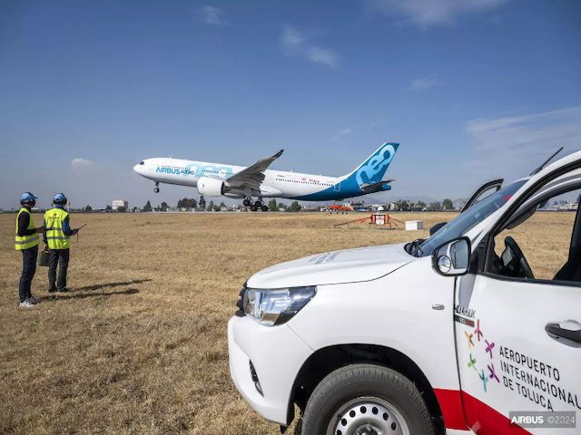 L’avion d’essai en vol A330-900 d’Airbus (MSN1795 / F-WTTN ) s’est récemment envolé pour Toluca au Mexique, puis pour La Paz en Bolivie pour une campagne d’essais en vol « à chaud et à haute température » d’une durée de quinze jours pour prouver les performances des avions et des moteurs dans des environnements aéroportuaires chauds et humides à haute altitude.