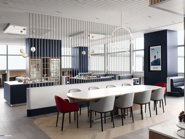 Imaginé et conçu par les équipes d’Air France, en collaboration avec l’agence SGK Brandimage, ce salon « élégant et raffiné dispose de différents espaces confortables pour s’adapter aux besoins de chacun », affirme le communiqué. Il décline ses couleurs identitaires, camaïeux de bleu, blancs lumineux, touches de rouge, pour un design épuré et chic. Le mobilier intègre les créations de célèbres designers français telles que les chaises hautes Ester signées Patrick Jouin, les fauteuils Ribbon de Pierre Paulin, la table basse de Charlotte Perriand ou encore les créations lumineuses de Margaux Keller.