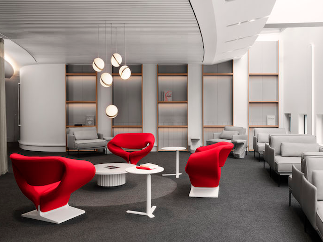 « Véritable bulle de confort » préservée du reste de l’aéroport, ce vestibule est « un concentré d’élégance et de raffinement à la française », indique Air France. Décorative et fonctionnelle, l’architecture d’intérieur conçue sur mesure par les équipes d’Air France et de l’agence SGK Brandimage délimite différents espaces intimistes, tout en préservant la sensation de volume. Le vestibule se décline dans des nuances lumineuses de blanc et de gris, rehaussées de touches de rouge. Profitant d’une lumière naturelle, il est meublé de créations des plus grands designers français tels que Pierre Paulin ou Christophe Pillet. Surpiqûres, capitonnages : chaque finition est soignée, conférant à l’espace un esprit haute couture.