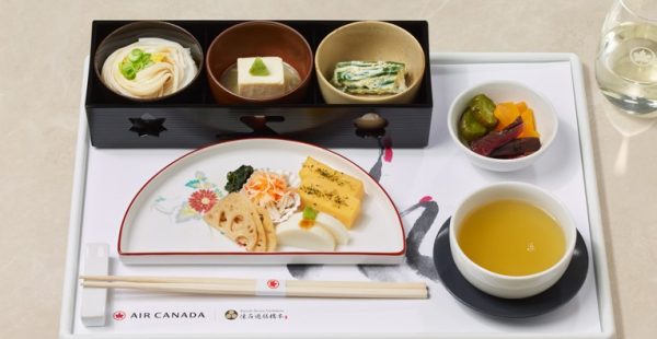 Sur les vols de Montréal, Toronto et Vancouver vers Osaka et Tokyo, les plats du chef japonais mettront en valeur une sélection minutieuse d’ingrédients traditionnels dans le cadre de menus en rotation. Les passagers pourront découvrir six plats par an : un zensai (entrée), par exemple des racines de lotus sautées, un komono (accompagnement), comme un tofu au sésame rehaussé d’une sauce au wasabi, et un oshokuji (plat principal), avec boeuf sukiyaki et tofu mijoté, oignons verts, chou nappa et gingembre rouge, servis avec du riz et une soupe miso. Un brunch est ensuite servi en plat individuel avant l’atterrissage.