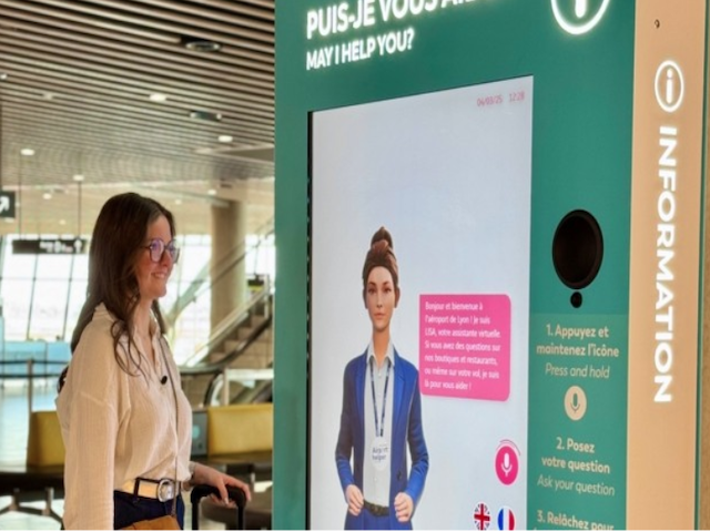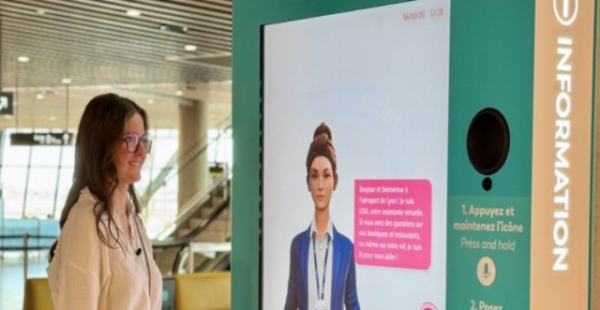L’Aéroport de Lyon déploie au Terminal 1 deux bornes interactives animées avec un avatar 3D conversationnel pour informer et répondre aux questions de ses voyageurs. Utilisant la technologie d’intelligence artificielle (IA) agentique, cet agent virtuel multilingue est capable d’orienter les voyageurs dans l’aéroport et de leur fournir des informations en temps réel sur leur vol et les services disponibles.