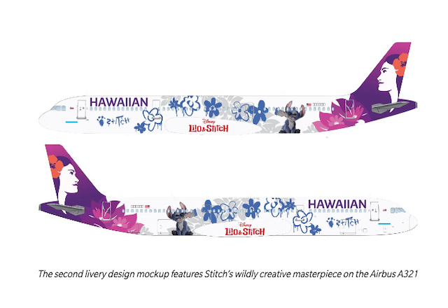 Le 7 mai dernier, les voyageurs ont pu apercevoir Stitch arborant son plus beau profil Pualani à bord de l’Airbus A330 d’Hawaiian, le premier de trois appareils spécialement conçus. La semaine prochaine, Hawaiian présentera sa deuxième livrée : un monocouloir Airbus A321 orné du chef-d’œuvre créatif de Stitch. La troisième livrée, dévoilée le mois prochain, sera celle du Boeing 717.