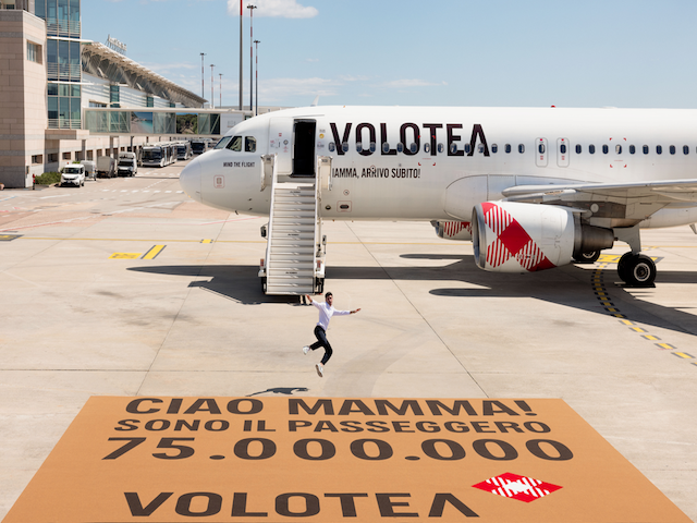 Le vol Barcelone-Olbia, qui a atterri hier à l’aéroport Costa Smeralda à 11h00, s’est déroulé exceptionnellement en présence de plusieurs membres des équipes de Volotea ainsi que de Carlos Muñoz, fondateur et PDG de Volotea, venus célébrer ensemble cette étape importante. Pour l’occasion, a été installé un tapis géant de 75 m2, en référence à 75 millions de passagers, avec la phrase imprimée : « Ciao Mamma, je suis le passager 75 0000 000. » Le 75 millionième passager s’est vu offrir 75 vols gratuits à partager avec sa mère. Un cadeau symbolique puisque selon Volotea, un quart de ses passagers voyage pour retrouver son cercle intime, faisant des retrouvailles le deuxième motif de voyage après le tourisme.
