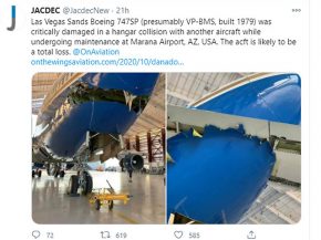 L’ouragan Zeta qui vient de frapper le sud des Etats-Unis n’est pas responsable : c’est Laura qui a détruit il y a deux mois un Boeing 747SP appartenant au casino Sands de Las Vegas. La force des vents à l’aéroport Chennault de Lake Charles en Louisiane fin aout était telle que deux avions stationnés dans un hangar […]