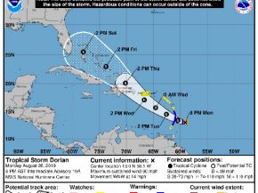 La tempête tropicale Dorian devrait se transformer en ouragan ce mardi ou mercredi, et après être passé au sud de la Martinique se déplace vers Porto Rico et la République Dominicaine. Des alertes sont en place un peu partout mais les aéroports des Antilles semblent avoir échappé au pire, même si de fortes pluies sont […]